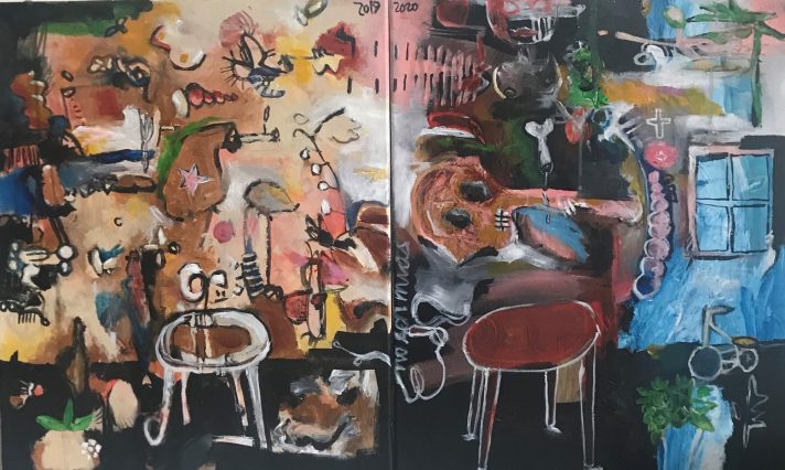 Since 2015, I have taken on painting again on a road of no return. I am now interested in telling stories through my paintings by returning to childhood memories which will help me lift a new practice based on the concept of re-emergence. Paraphrasing Bitta Timm Knudsen, re-emergence as a concept, produces an apparent paradox between a return of something and something new, appearing. Re-emergence transgresses this paradox. Any emergence of past un-acknowledged possibilities actualized at specific time or moment, or, to rephrase it, re-emergence is a lost opportunity from the past that returns to offer itself for creating alternative futures. Contrary to both repression and removal and like reframing, re-emergence allows the ghosts to re-appear as new futures. The notion of basing my new work on past ghosts drives my praxis.